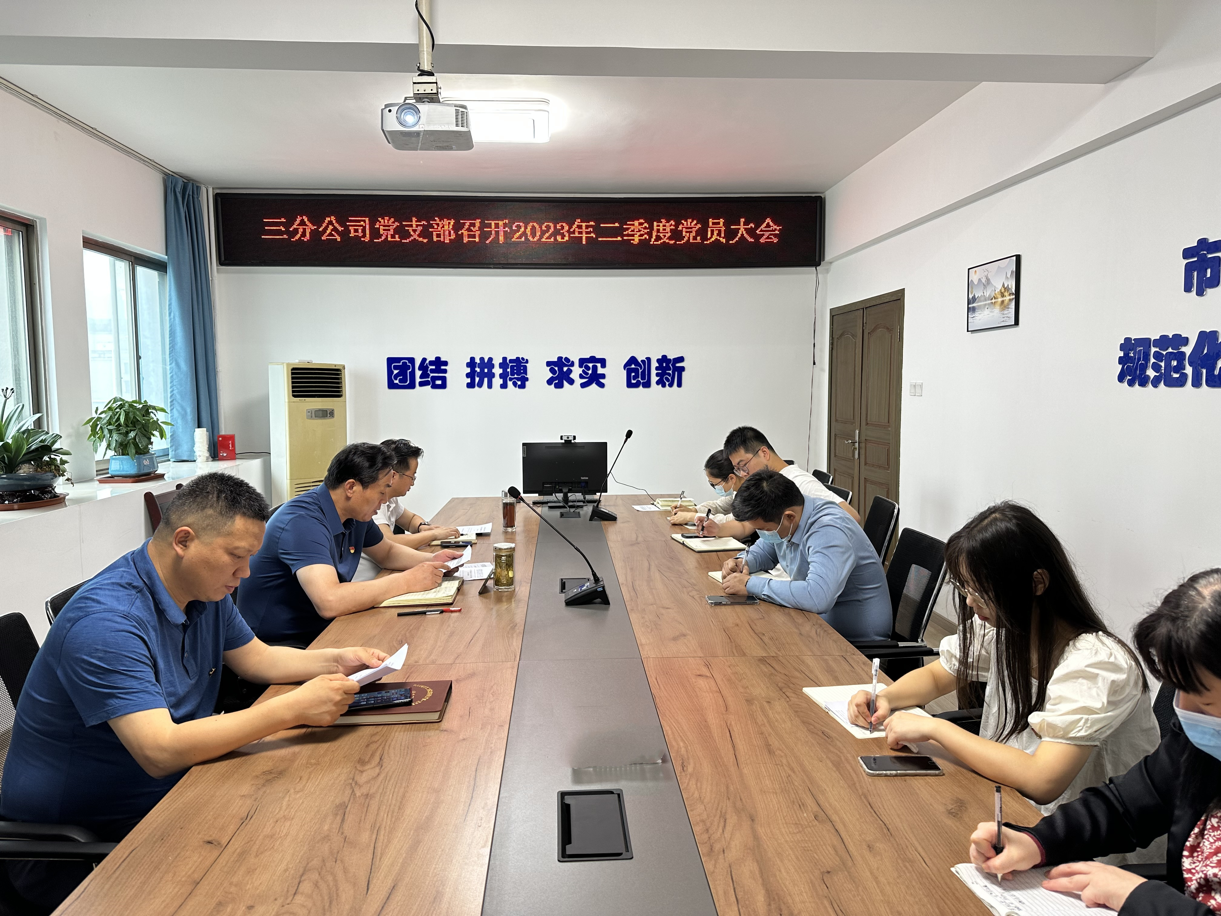 5月26日上午,第三分公司黨支部在會議室召開2023年二季度黨員大會,會議由黨支部書記、經理馬福才主持。分公司全體黨員參會,項目黨員在線參會。