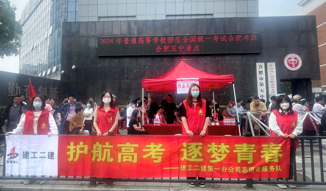 6月7日上午,建工二建團(tuán)委分別在合肥市第五中學(xué)(長江校區(qū))、合肥三十八中(和平路校區(qū))高考考點(diǎn)組織團(tuán)員青年開展愛心助力高考志愿服務(wù)活動(dòng)。