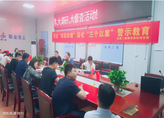 5月28日,公司財(cái)務(wù)總監(jiān)項(xiàng)新元一行深入四分公司合肥麗豐璞羽西苑項(xiàng)目部開展以“三個(gè)以案”警示教育大宣講、大調(diào)研、大督查活動(dòng)。項(xiàng)新元一行首先聽取了項(xiàng)目部關(guān)于開展“三個(gè)以案”的工作匯報(bào)。隨后,調(diào)研組帶領(lǐng)大家學(xué)習(xí)了安徽建工控股黨委關(guān)于深化“三個(gè)以案”警示教育大宣講和關(guān)于“工程建設(shè)領(lǐng)域廉潔風(fēng)險(xiǎn)防控清單”內(nèi)容,同時(shí)進(jìn)行了問卷調(diào)查,對項(xiàng)目關(guān)鍵崗位人員進(jìn)行了談話。最后,項(xiàng)新元重申了建工控股紀(jì)委書記宋志華5月25日在該項(xiàng)目給公司中層干部提出的幾點(diǎn)要求,并對項(xiàng)目部提出了三點(diǎn)建議。