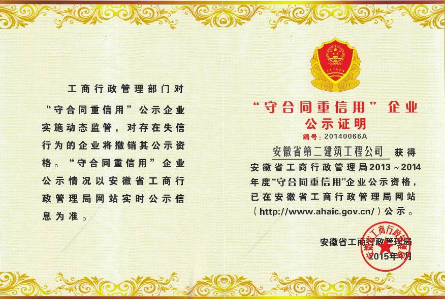 “守合同重信用”企業(yè)(2013-2014年度)