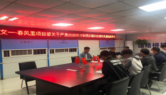 另外傳達(dá)了認(rèn)真學(xué)習(xí)安徽省紀(jì)委《關(guān)于貫徹落實習(xí)近平總書記重要批示精神 加強監(jiān)督執(zhí)紀(jì) 堅決制止餐飲浪費行為的通知》和公司紀(jì)委《關(guān)于嚴(yán)肅2020年中秋國慶期間紀(jì)律作風(fēng)的通知》。