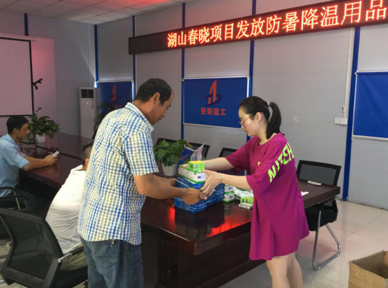 驕陽似火,酷暑難當(dāng)。隨著聒噪的蟬鳴,又迎來了今年的高溫季節(jié)。自7月中旬,公司啟動“關(guān)愛一線、夏送清涼”慰問一線活動以來,六分公司領(lǐng)導(dǎo)班子先后走進文一·春風(fēng)里、文一·錦門繁華里等項目部開展慰問活動。慰問期間,每到一處,不僅為一線職工送上礦泉水、毛巾、花露水、綠豆、藿香正氣水、防暑藥品等慰問品,還深入到項目施工現(xiàn)場,與職工親切交談,要求項目部做好高溫防暑工作,靈活安排作息時間,落實高溫天氣作業(yè)安全防范措施,切實做好當(dāng)前防暑降溫工作,防止發(fā)生中暑事件,確保人身安全。