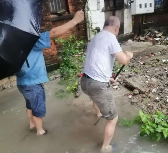 汛情就是命令,搶險就是責任。后勤黨員干部全體人員緊急行動。一是立即召開防汛救災搶險工作緊急會議,總經理助理蒯家江要求大家統(tǒng)一思想、提高站位、壓實責任、聽從指揮,加強隱患排查,勇于擔當、不怕吃苦,第一時間發(fā)現(xiàn)險情報告并進行處置,確保轄區(qū)內住戶的生命財產安全。二是成立后勤黨支部防汛救災搶險突擊小組。主任書記分別任正副組長,并對防汛救災搶險工作做了分工和工作安排。三是立即啟動預案,根據(jù)汛情需要科學安排搶險救援任務、防汛物資準備。其次整合后勤維修班人員沖在一線對老舊房區(qū)域地面進行排澇排污,清除垃圾和廢棄物。要求全體員工從18日起進入24小時緊急待命狀態(tài),保持手機暢通,隨時準備投入到防汛救災搶險的工作中去。四是加強公司轄區(qū)內老舊平房區(qū)域的巡查檢視力度,包干劃片作業(yè),責任到人,后勤辦負責人負責總體調度協(xié)調,與轄區(qū)政府、街道、社區(qū)溝通對接。五是加強對各處內澇地點進行排水,疏通管道,積極配合轄區(qū)街道做好防汛救災搶險工作。同時對公司生活小區(qū)存在安全隱患的住戶,進行引導疏散,截至18日上午10時,14、15棟平房20戶住家已經全部安全疏散。