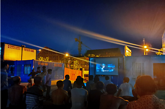 夜幕降臨,放映場(chǎng)上,辛勤勞作一天的工人們聚在一起,平時(shí)忙碌的工作,以及住宿條件的限制,每天的“兩點(diǎn)一線”讓他們的業(yè)余生活枯燥而單調(diào),沒(méi)有那么豐富,通過(guò)在工人生活區(qū)放映電影,讓他們的業(yè)余生活多了一項(xiàng)文化娛樂(lè)項(xiàng)目,可以給他們帶來(lái)一場(chǎng)文化盛宴。