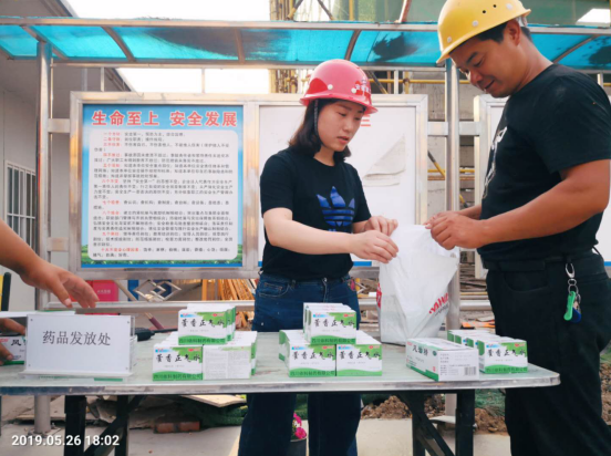 在施工現場,黨支部書記鄭婭代表項目部向一線班組人員送去防暑降溫的藿香正氣水、風油精等藥品,并囑咐他們一定要做好工人健康、安全防護工作,合理安排工序和工作量,合理調整工人作息時間,盡可能避開高溫時段,在保證安全的前提下,圓滿完成各項工作任務。
