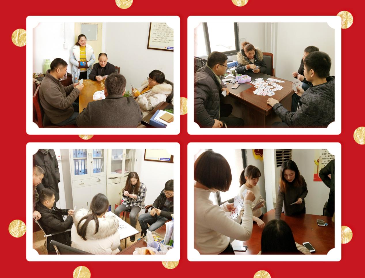 2月1日上午,五分公司舉辦了職工“迎新春”摜蛋比賽。比賽采用抽簽配對的方式?jīng)Q定參賽組合和順序,設(shè)一、二、三等獎及參與獎?,F(xiàn)場氛圍愉快祥和,參賽搭檔配合默契、斗智斗勇,充分施展自己的牌技、牌品。牌局你追我趕,有遙遙領(lǐng)先居高不下的,也有開局不利后來居上的,但無論勝負,大家都喜笑顏開,觀戰(zhàn)者也興致勃勃。