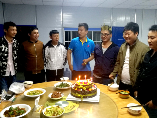 10月11日晚上,項(xiàng)目部舉行了一次特殊的聚會,大家共同舉杯為項(xiàng)目質(zhì)檢科科長施若愚慶祝生日,將一句句祝福,一份份真誠送到他的心坎里。