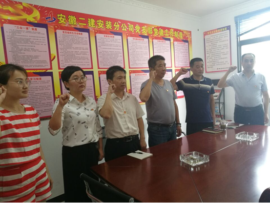 不忘初心,重溫入黨誓詞。分公司6名黨員及入黨積極分子重溫入黨誓詞,通過莊嚴(yán)的儀式,提醒黨員干部時刻謹(jǐn)記黨旗下的承諾,踐行黨章要求。