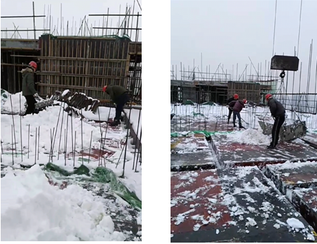 隨著“大干60天生產(chǎn)競賽”的圓滿結(jié)束,宿州市于元月4日迎來了第一場大范圍強降雪。持續(xù)了兩天的大雪使整個宿州籠罩在一片白色之中,道路全部被阻斷,現(xiàn)場施工也一度停滯。為做好極端天氣下建筑施工的安全生產(chǎn)工作,一方面項目部緊急成立應(yīng)急小組,對暴雪造成的安全隱患進行全面排查,尤其對生活區(qū)、樓層外架、現(xiàn)場臨時用電、起重設(shè)備等進行專項檢查,及時清理積雪、消除隱患;另一方面為保證雪后施工的正常開展,項目部動員管理人員對樓頂現(xiàn)澆面的積雪進行清理,為下一步的安全生產(chǎn)提供及時的工作面。
