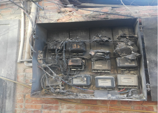 7月21日清晨5點(diǎn),后勤綜合服務(wù)部物管辦接到原二分公司生活基地管理員緊急電話,生活區(qū)平3棟電表箱因持續(xù)高溫用電負(fù)荷增大,線路老化嚴(yán)重造成電表自燃,表箱整體燒毀。由于消防器材的配備完善,平時(shí)對(duì)居民防火意識(shí)的宣傳到位,撲救及時(shí),未造成重大火災(zāi)及財(cái)產(chǎn)損失。接到電話后,后勤物管辦立即安排專業(yè)技術(shù)人員趕赴現(xiàn)場,對(duì)事故現(xiàn)場進(jìn)行全面的排查檢修,在不影響整個(gè)小區(qū)居民正常用電的情況下,首先斷開這一棟平房主電源解除安全隱患,在本著以最快速度解決問題和節(jié)約成本的前提下,對(duì)現(xiàn)場進(jìn)行了梳理,就地制定解決施工方案并及時(shí)匯報(bào)領(lǐng)導(dǎo)實(shí)施操作。