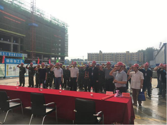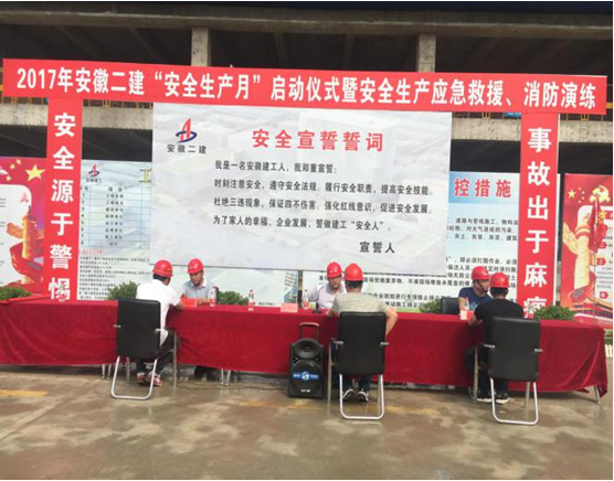 2017年6月8日上午,由安徽二建承建的太和發(fā)藝時(shí)尚文化園公共服務(wù)中心項(xiàng)目開展2017年“安全生產(chǎn)月”啟動儀式暨安全生產(chǎn)應(yīng)急救援、消防演練活動,正式拉開了以“全面落實(shí)企業(yè)安全生產(chǎn)主體責(zé)任”為主題的安全生產(chǎn)月活動序幕。公司副總經(jīng)理葉和永,安全管理部、工程管理部、保衛(wèi)部、太和PPP項(xiàng)目負(fù)責(zé)人、班組長、一線作業(yè)施工人員等百余人參加了此次活動。