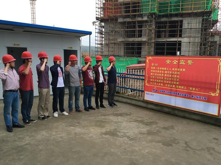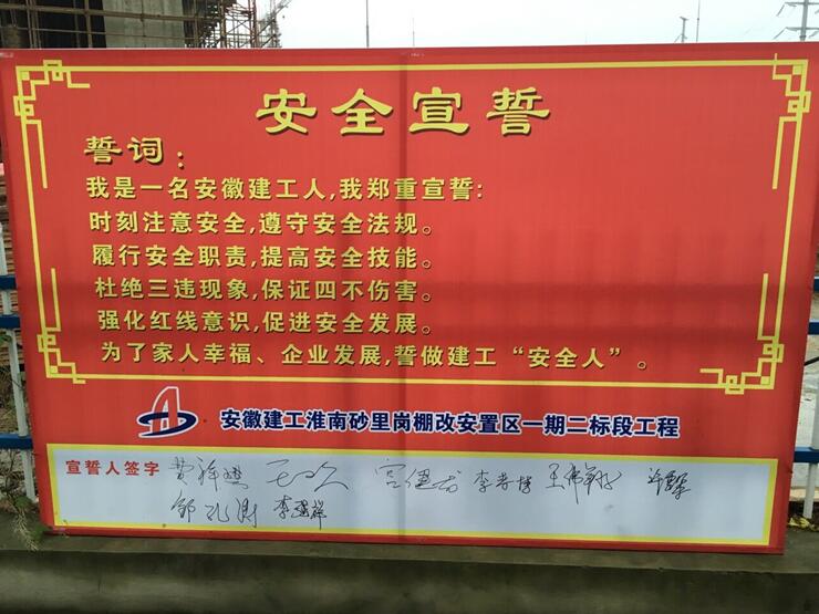 早上六點(diǎn),清晨第一縷陽光剛剛灑下,項(xiàng)目部管理人員已在安全宣誓牌前排列整齊,面對莊嚴(yán)的宣誓牌,全體成員在項(xiàng)目技術(shù)負(fù)責(zé)人王歡的帶領(lǐng)下,右手握拳置于面龐,鄭重地齊聲宣讀誓詞:我是一名安徽建工人,我鄭重宣誓:時刻注意安全,遵守安全法規(guī);履行安全職責(zé),提高安全技能;杜絕三違現(xiàn)象,保證四不傷害;強(qiáng)化紅線意識,促進(jìn)安全發(fā)展;為了家人幸福,企業(yè)發(fā)展,誓做建工“安全人”。隨后,項(xiàng)目部全體成員在項(xiàng)目經(jīng)理費(fèi)祥琪的帶領(lǐng)下,陸續(xù)在宣誓牌上簽下了自己的名字,表明自己時刻謹(jǐn)記安全宣誓內(nèi)容,堅持安全生產(chǎn)的決心。