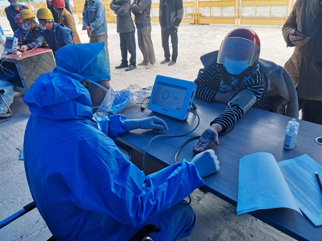 檢查主要包括測量血壓、胸外聽診、心率檢查及醫(yī)療咨詢等,醫(yī)護(hù)人員就防疫、防暑、應(yīng)急措施等知識進(jìn)行普及講解,提醒工友們注意飲食起居,做好自我防護(hù)。