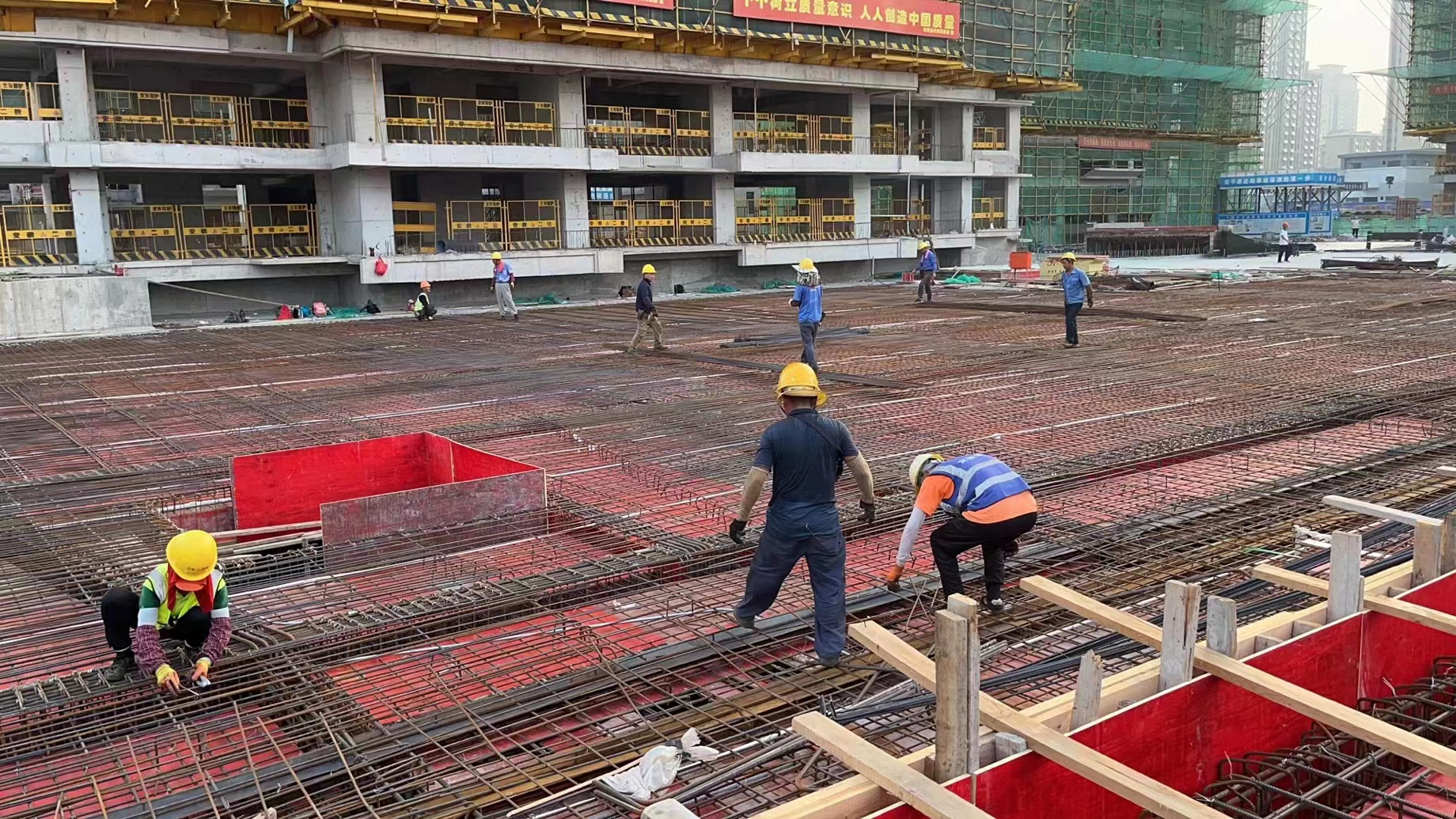賽進度,科學調(diào)度、統(tǒng)籌資源配置,提升工期履約。以項目部制定的目標節(jié)點工期要求為依據(jù),統(tǒng)籌調(diào)動各項資源配置,堅持施工班組抓工序計劃目標,各樓棟抓日計劃目標,項目部抓周計劃目標,在工程施工過程嚴格執(zhí)行“日檢、周檢、月檢”制度全覆蓋,全面保障工程進度。