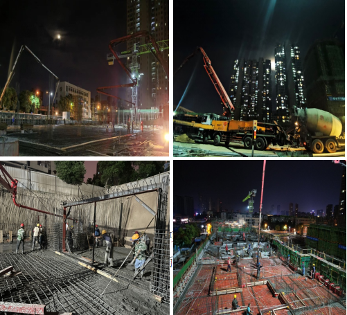 為完成各項(xiàng)節(jié)點(diǎn)計(jì)劃,項(xiàng)目管理人員帶領(lǐng)各勞務(wù)班組“搶晴天、戰(zhàn)雨天,牛毛細(xì)雨當(dāng)好天”,搶抓工期,比拼進(jìn)度;進(jìn)入夏季以來,持續(xù)高溫,市氣象部門接連多次發(fā)布橙色預(yù)警,戶外溫度常達(dá)40度以上,為確保工人作業(yè)安全,項(xiàng)目部及時(shí)調(diào)整施工作業(yè)時(shí)間,在確保施工安全的前提下,采取“干兩頭、歇中間”的施工措施,組織班組加班加點(diǎn)分批交叉作業(yè),呈現(xiàn)出“月亮底下當(dāng)白天,不給黑夜留時(shí)間”的大干火熱場(chǎng)面。同時(shí)項(xiàng)目部每日在高溫時(shí)段為現(xiàn)場(chǎng)施工人員送去防暑藥品和降溫飲品,防止意外發(fā)生。隨著最近氣溫逐漸轉(zhuǎn)涼,整個(gè)施工現(xiàn)場(chǎng)挖機(jī)聲、機(jī)械聲、泵送聲相互交織;夜色下施工現(xiàn)場(chǎng)燈光如晝,人頭躦動(dòng);渣土車、混凝土罐車川流不息往返穿梭,現(xiàn)場(chǎng)各個(gè)工作面的施工人員都卯足勁往前沖。
