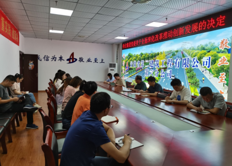 第六公司黨支部傳達(dá)學(xué)習(xí)安徽建工集團(tuán)全面深化改革推動創(chuàng)新發(fā)展動員部署暨主題教育黨課報告會精神。會議要求,一要提高政治站位,統(tǒng)一思想認(rèn)識,充分認(rèn)識到集團(tuán)深化改革推動創(chuàng)新發(fā)展是一項意義重大、影響深遠(yuǎn)的綜合性改革,是集團(tuán)在新起點上,把握新形勢新要求,謀劃新思路新發(fā)展的舉措,要全面貫徹落實建工控股黨委的決策部署,認(rèn)真把握集團(tuán)全面深化改革推動創(chuàng)新發(fā)展的歷史使命;二要緊緊圍繞集團(tuán)戰(zhàn)略部署和工作安排,進(jìn)一步樹立為集團(tuán)大發(fā)展、轉(zhuǎn)型發(fā)展、高質(zhì)量發(fā)展作貢獻(xiàn)的責(zé)任和擔(dān)當(dāng)意識;三要認(rèn)真落實集團(tuán)工作安排,進(jìn)一步做好市場開拓,搶抓市場先機(jī),持續(xù)推進(jìn)項目標(biāo)準(zhǔn)化建設(shè),嚴(yán)格落實集團(tuán)、公司各項規(guī)定,樹牢風(fēng)險意識,做到“五個嚴(yán)”,持續(xù)推動公司改革轉(zhuǎn)型、高質(zhì)量發(fā)展。