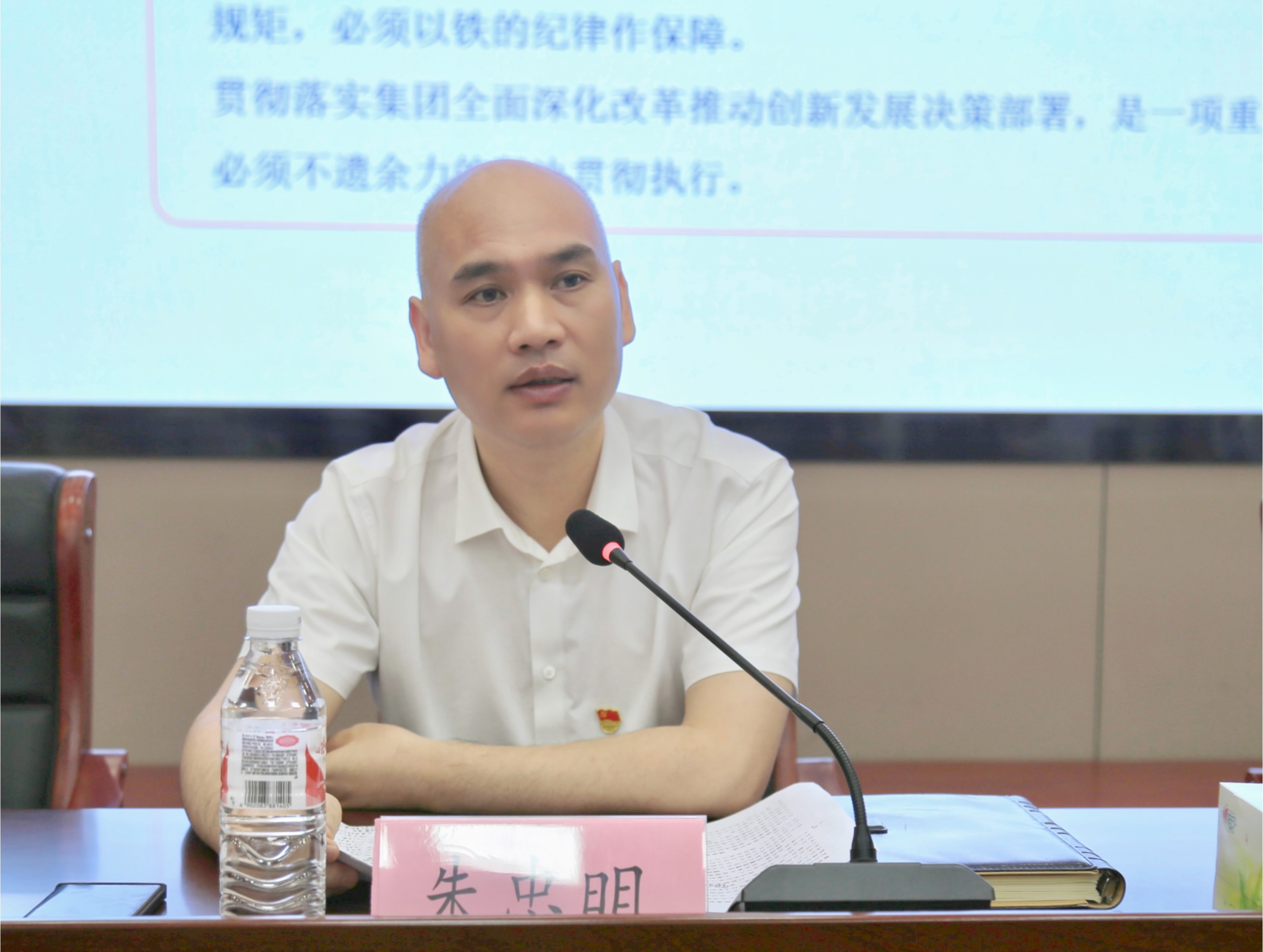 朱忠明作題為《遵規(guī)守紀 嚴于律己 以身作則 營造風清氣正、干事創(chuàng)業(yè)的良好氛圍》專題黨課,從四個方面展開:一是扎實開展黨紀學習教育,強化黨員干部紀律意識。二是紀律建設要融入企業(yè)治理,推進黨風廉政建設。三是認清形勢任務,營造風清氣正的干事氛圍。四是堅持真抓實干,扎實做好年度各項重點工作。