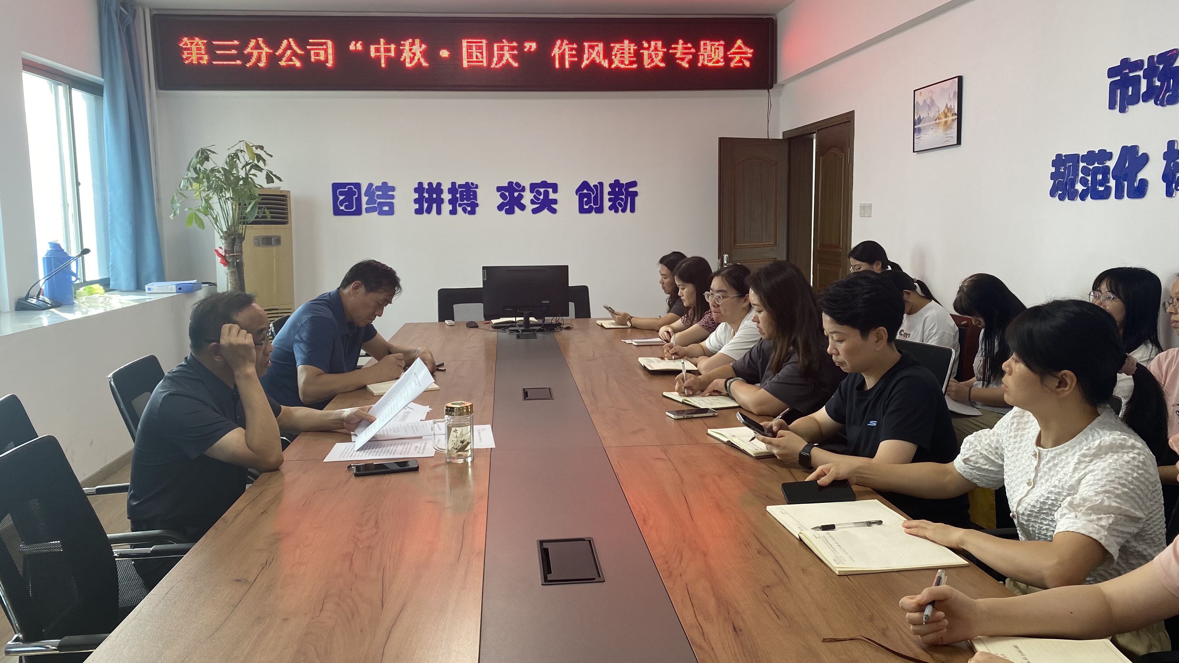 為進一步加強“中秋、國慶”期間紀律作風建設(shè),增強分公司全員廉潔自律意識,營造風清氣正的節(jié)日氛圍,9月12日下午,第三分公司召開“中秋、國慶”節(jié)前作風建設(shè)專題會,會議由黨支部書記司圣華主持。