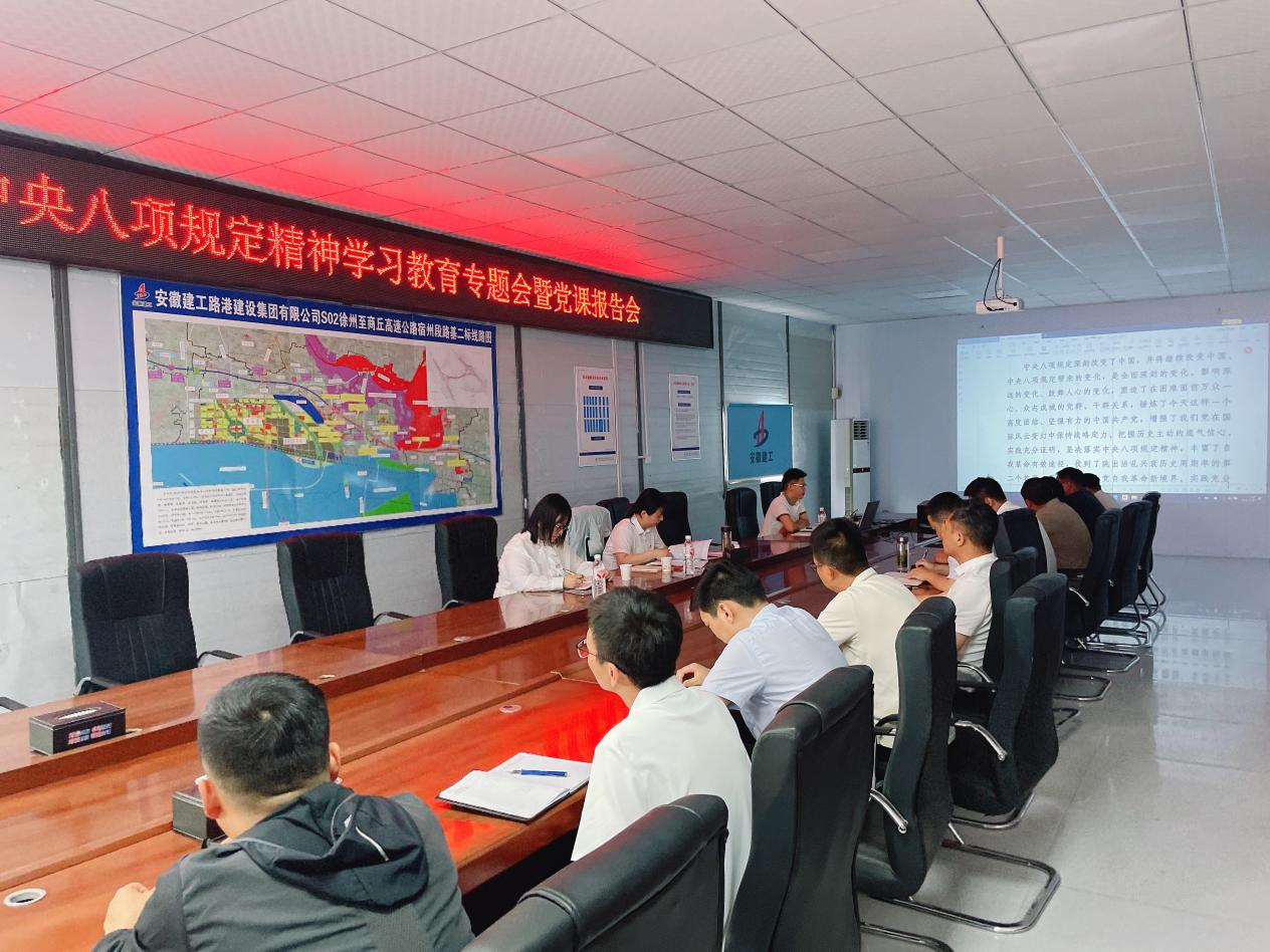 近日,宿州投發(fā)機(jī)關(guān)黨支部書(shū)記徐晶晶一行先后赴S02徐商高速路基二標(biāo)項(xiàng)目部、S02徐商高速路基一標(biāo)二分部項(xiàng)目部,開(kāi)展深入貫徹中央八項(xiàng)規(guī)定精神學(xué)習(xí)教育專題會(huì)暨黨課報(bào)告會(huì)。機(jī)關(guān)黨支部書(shū)記徐晶晶講授黨課,黨支部委員陸冬領(lǐng)學(xué)相關(guān)內(nèi)容,項(xiàng)目部全體職工參加會(huì)議。