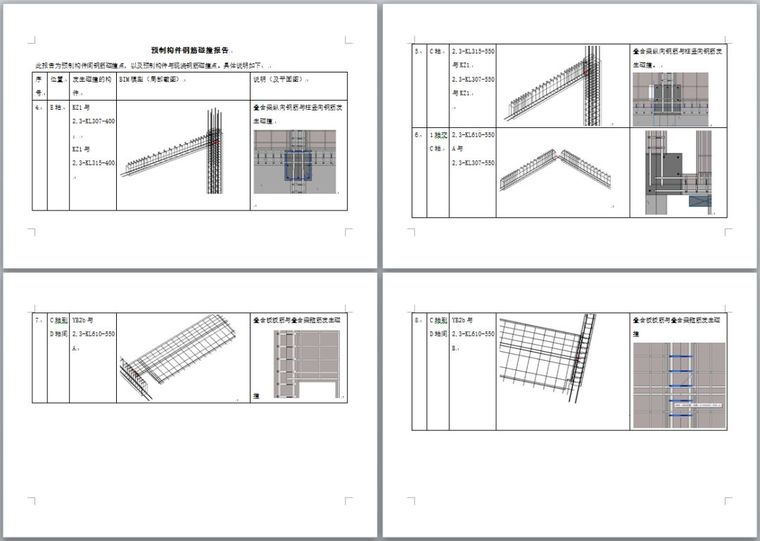 在目前國家大力發(fā)展的裝配式建筑中,鋼筋的碰撞尤為重要。在構(gòu)件生產(chǎn)前期,利用BIM技術(shù)對構(gòu)件進(jìn)行鋼筋碰撞,提前調(diào)整構(gòu)件鋼筋位置,避免現(xiàn)場安裝發(fā)現(xiàn)問題,難以解決。在溫州矮凳橋51號周轉(zhuǎn)房裝配式建筑項目中,BIM工程師在拿到二維的深化圖紙后進(jìn)行模型的搭建,經(jīng)過檢查發(fā)現(xiàn)了多處鋼筋碰撞點,整理成報告提交給項目負(fù)責(zé)人。隨后,BIM工程師根據(jù)項目負(fù)責(zé)人反饋的修改意見,對鋼筋排布進(jìn)行調(diào)整。