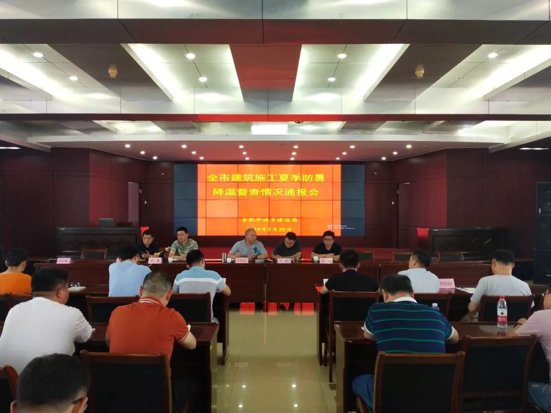 7月29日,合肥市城鄉(xiāng)建設(shè)局召開全市建筑施工夏季防暑降溫督查情況通報(bào)會(huì),在會(huì)上合肥市建設(shè)局質(zhì)量安全處解讀了國家、省廳、市安委辦及局有關(guān)高溫安全文件精神,通報(bào)近期全市建筑施工夏季防暑降溫督查情況,強(qiáng)調(diào)近期安全異常形勢(shì),并就聯(lián)合懲戒提要求;并播放違規(guī)施工視頻、圖片亂象。