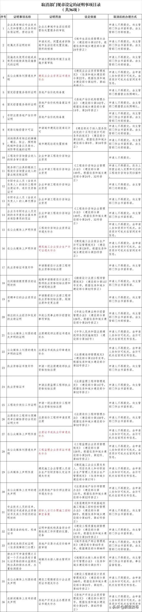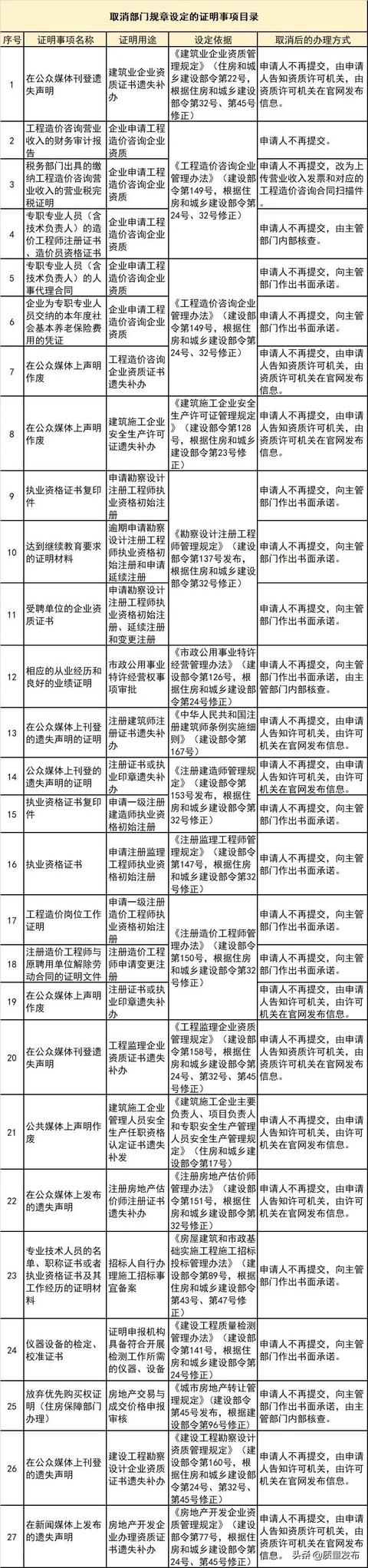 為貫徹落實(shí)黨中央、國(guó)務(wù)院關(guān)于減證便民、優(yōu)化服務(wù)的部署要求,住房和城鄉(xiāng)建設(shè)部決定取消部分部門(mén)規(guī)章和規(guī)范性文件設(shè)定的證明事項(xiàng),相關(guān)證明事項(xiàng)自公布之日起取消。