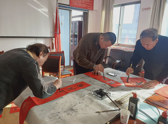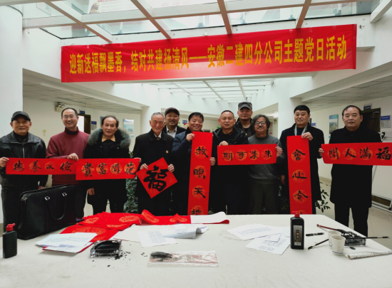 春節(jié)臨近,為營造喜慶、祥和、熱烈的新春氛圍,豐富分公司文化內涵,弘揚中華優(yōu)秀傳統(tǒng)文化。1月29日下午,安徽二建四分公司黨支部組織開展“迎新送福飄墨香,結對共建揚清風”寫春聯(lián)送祝福主題黨日活動?;顒友埩税不帐⌒滤能姎v史研究會淮海委員會會長張振山、副會長楊承愉,安徽省書法家協(xié)會會員牛中民、朱良謀等一行現(xiàn)場揮毫寫春聯(lián),分公司機關近30余人參加了活動。