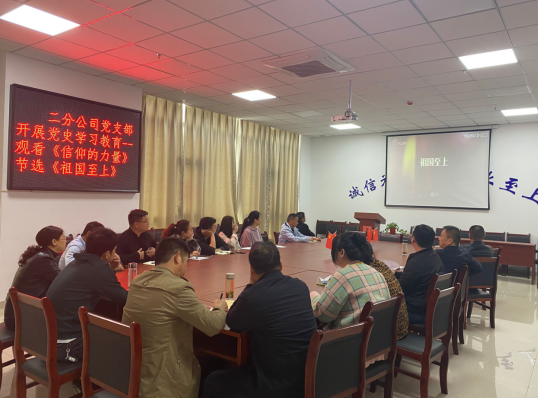 為認(rèn)真貫徹落實習(xí)近平總書記在中央黨史學(xué)習(xí)教育動員大會上的重要講話精神,進一步深入貫徹公司黨委關(guān)于開展黨史學(xué)習(xí)教育的文件精神。二分公司黨支部開展黨史學(xué)習(xí)教育活動,組織黨員和干部職工觀看電影《長征》及紀(jì)錄片《信仰的力量》節(jié)選《祖國至上》。