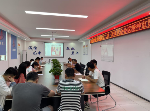 為貫徹落實(shí)集團(tuán)二屆一次職代會暨“七一”表彰會會議精神,7月7日,一分公司黨支部書記倪海霞一行至淮北鉑悅府項(xiàng)目召開專題會議,項(xiàng)目全體職工參加。